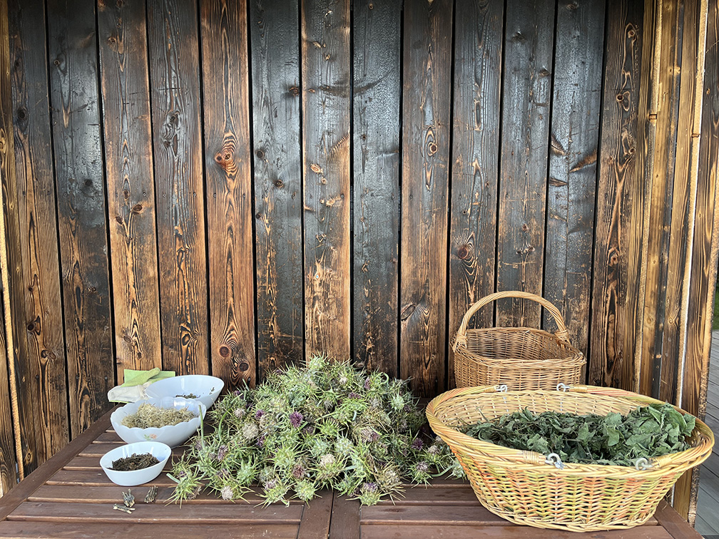 Il rapporto con Ca' Inua e il suo aspetto verde, per quanto riguarda Alessandra, si è concretizzato nella relazione con le piante medicinali che crescono spontanee nei prati e nei boschi all'interno e intorno al podere.